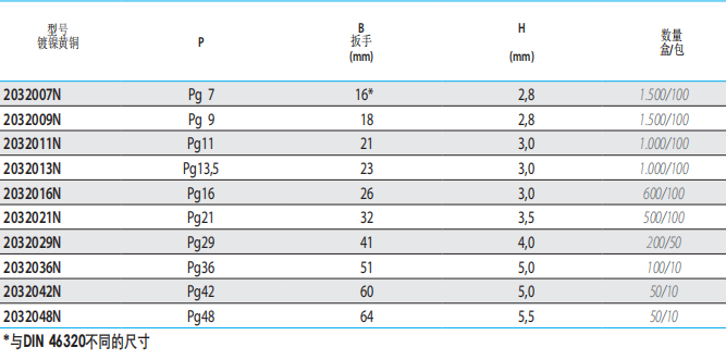Pg 螺纹 DIN 40 430 - 尺寸 DIN 46 320